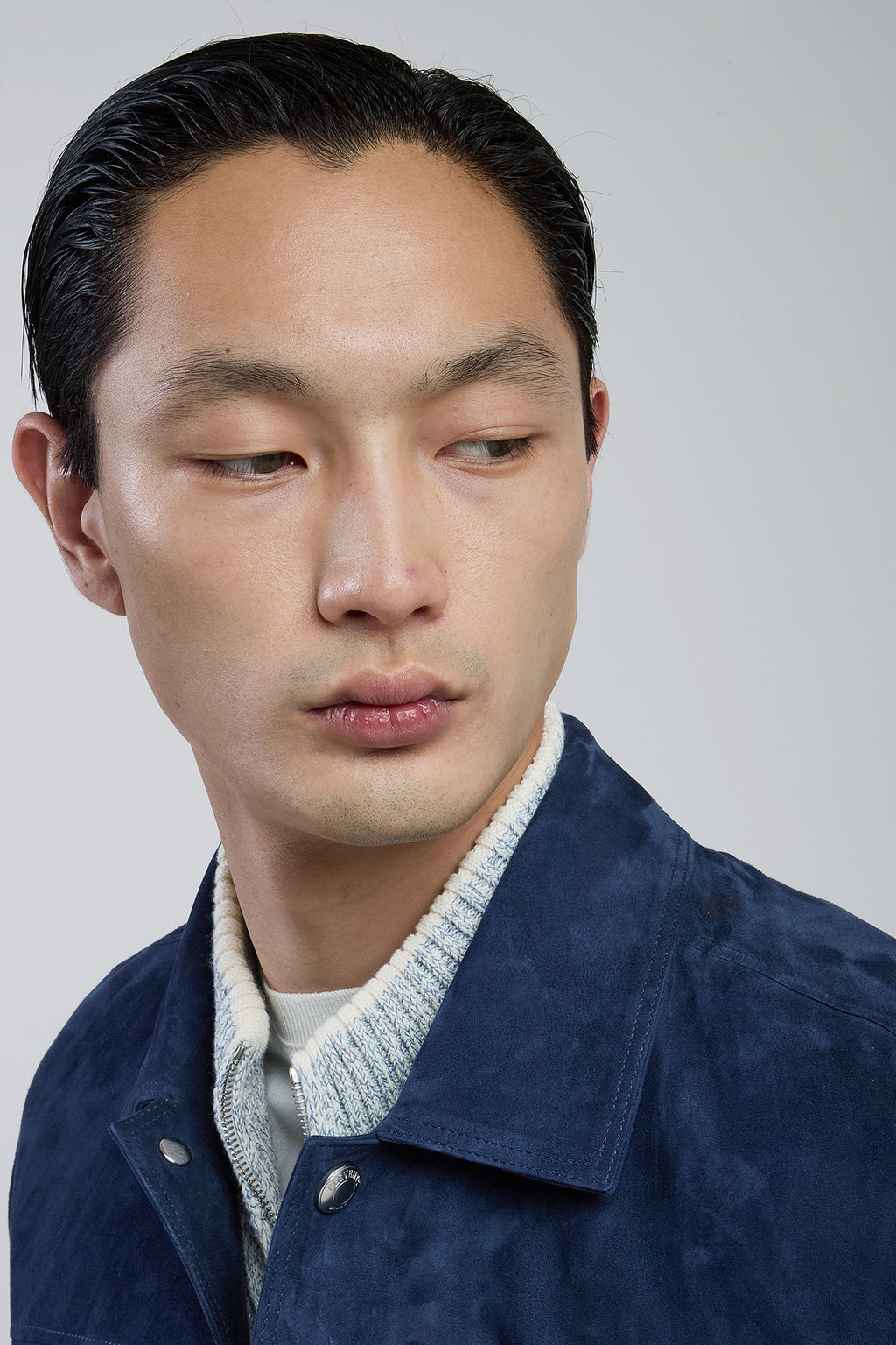 Giubbino sfoderato d'ispirazione varsity in suede nappato con polsi in maglia. Realizzato in un pellame estremamente leggero, dalla texture soffice e vellutata, il giubbino presenta una vestibilità regolare.Composizione