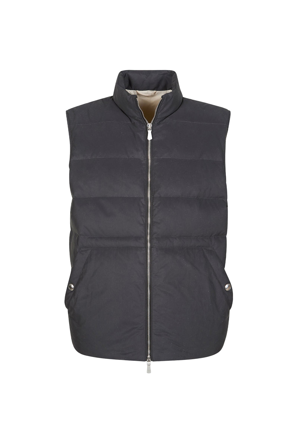 Gilet imbottito dalla vestibilità regolare, fabbricato con tessuto tecnico e cotone Sea Island di Lanificio Ermenegildo Zegna. Capo full zip dal sapore sportivo tasche marsupio e cappuccio con coulisse regolabile.