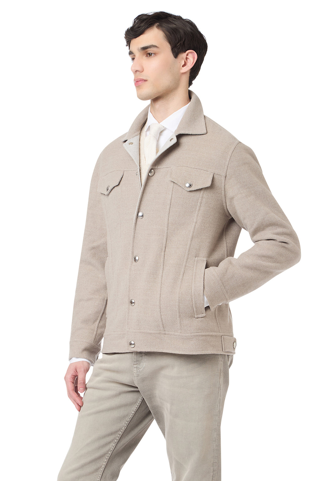 Giacca in calda lana, dalla vestibilità regolare. Rivisitazione in chiave invernale della denim jacket, classico intramontabile del guardaroba maschile. La lavorazione double impreziosisce il capo sfoderato, garantendo rifiniture interne impeccabili.