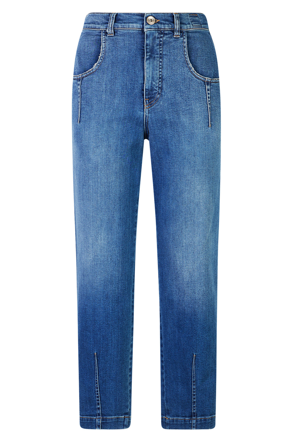 Pantalone iconico in denim tinto, realizzato con tessuto di cotone denim bull.