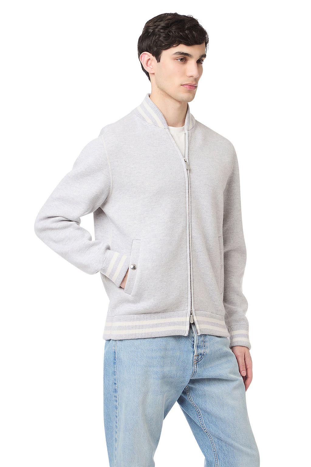 Full-zip bomber jacket in warm wool, gauge 12. The knitted construction ensures maximum comfort, adapting to any body type. Regular fit.