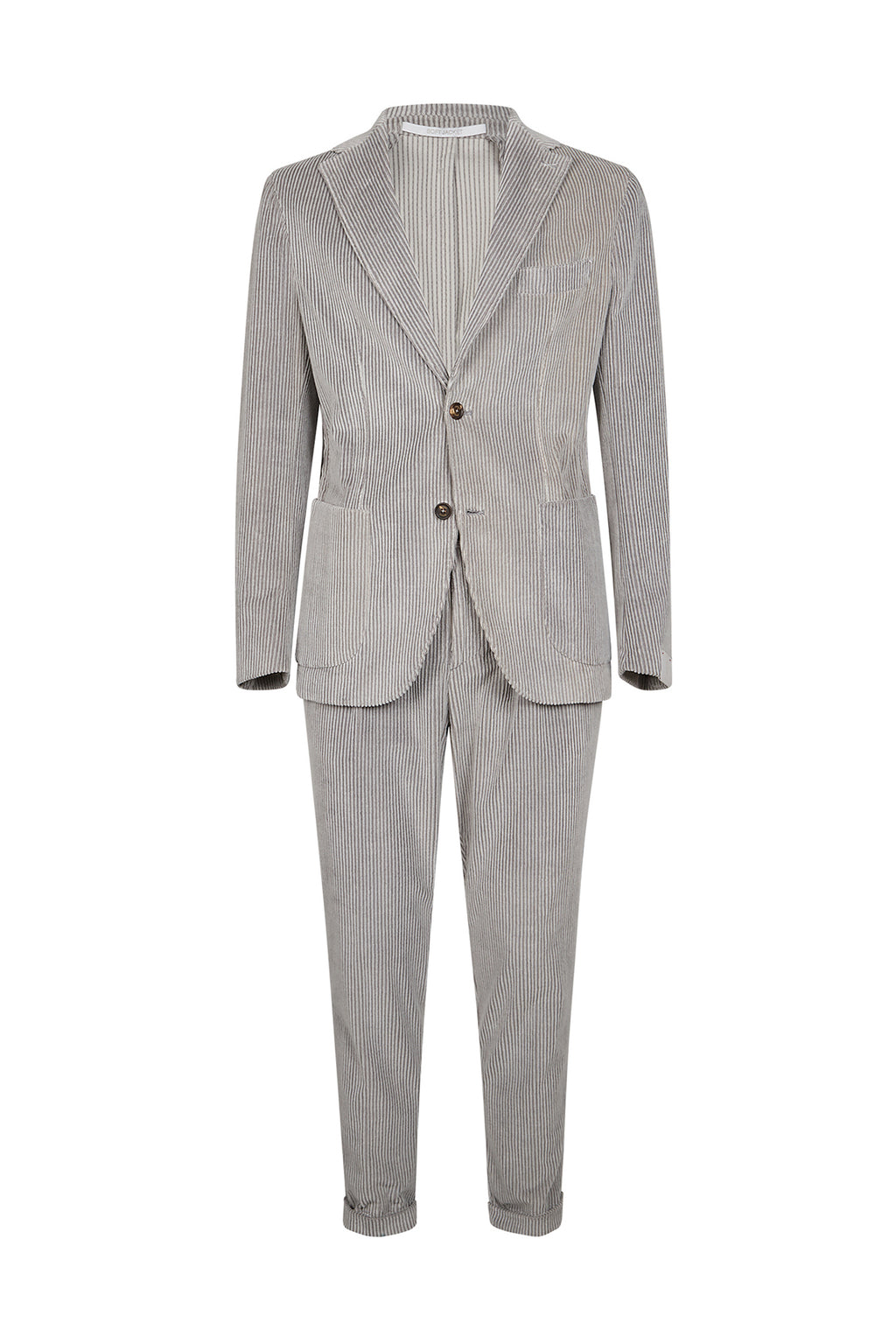 Little cotton coast velvet dress and cashmere coasts, with the slim fit. The soft jacket, completely unstructured, is combined with the jogger trousers with coulisse. Made entirely in Italy with hand passages that require about ten hours of processing, the dress is characterized by a single button on the sleeve, a distinctive sign of the brand, inspired by the tradition of Neapolitan tailoring.Composition