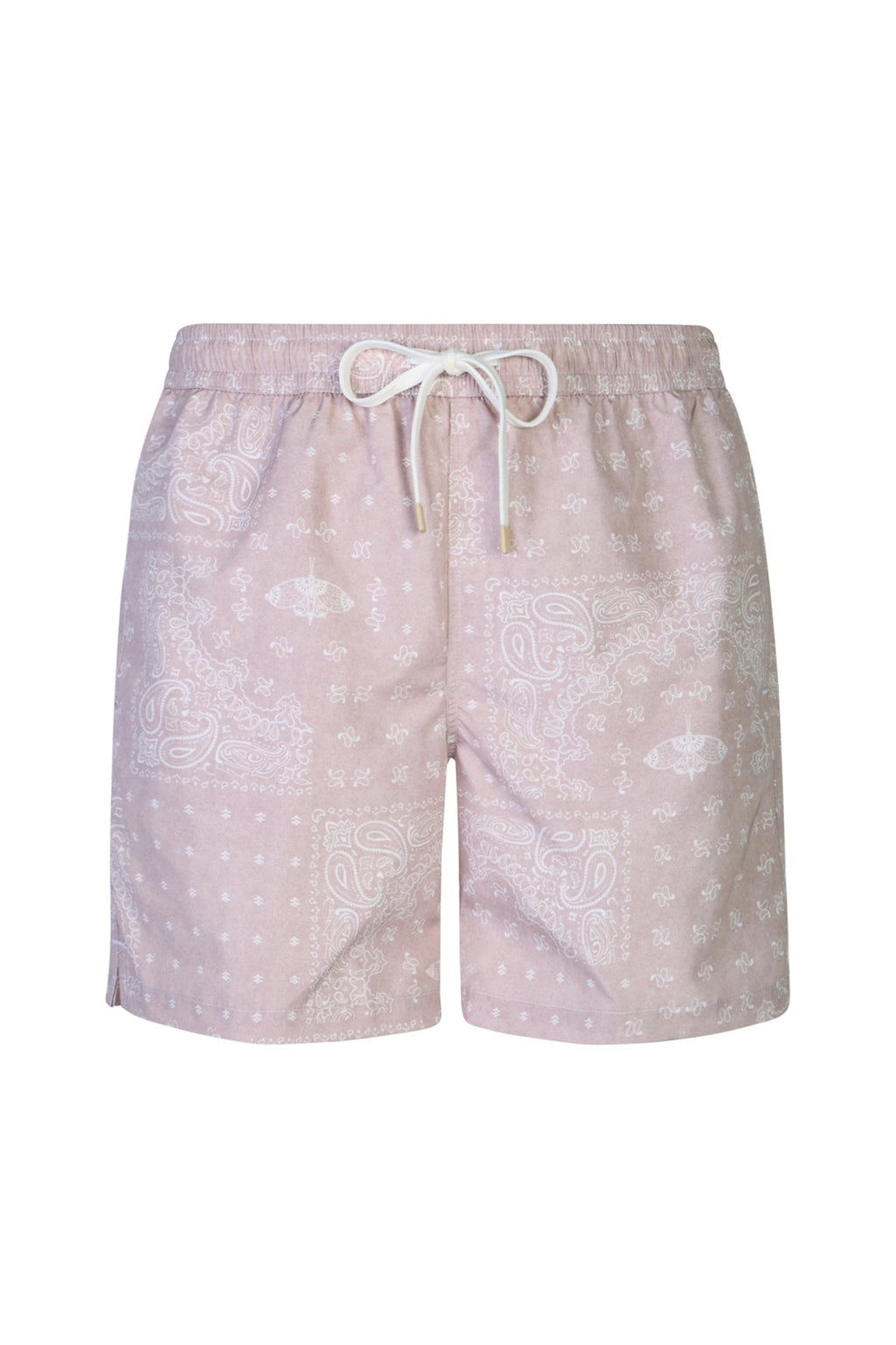 Technical fabric swim shorts with paisley print. Designed to fall above the knee, they offer maximum comfort with a sporty drawstring and rubber stoppers.
