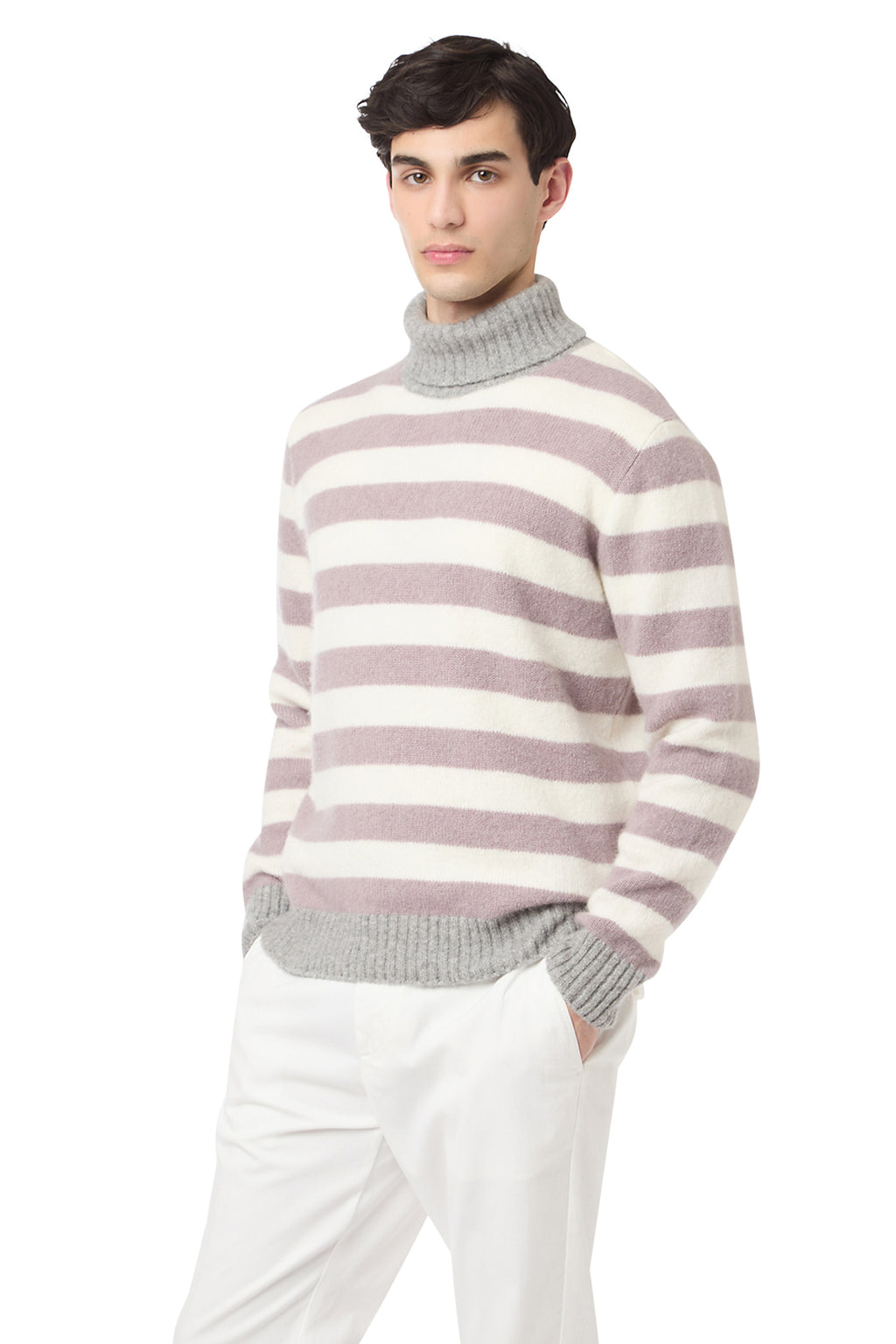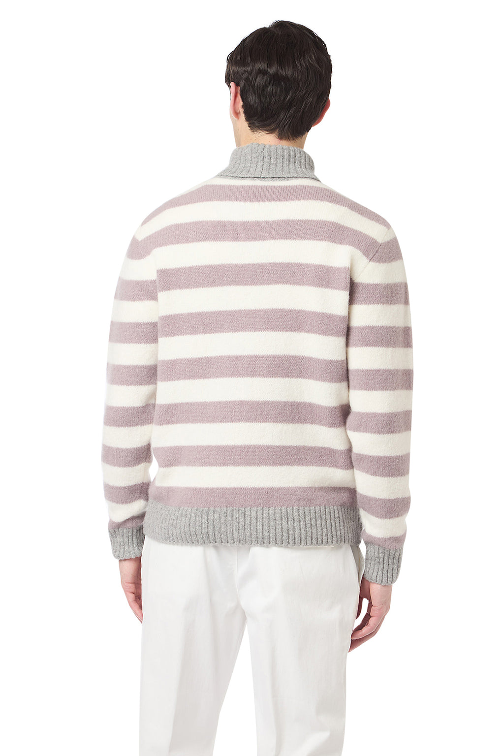 Turtleneck jumper in a fine cashmere-silk yarn, gauge 5. A striped design lends a sporty edge to this winter-ready garment. Regular fit.