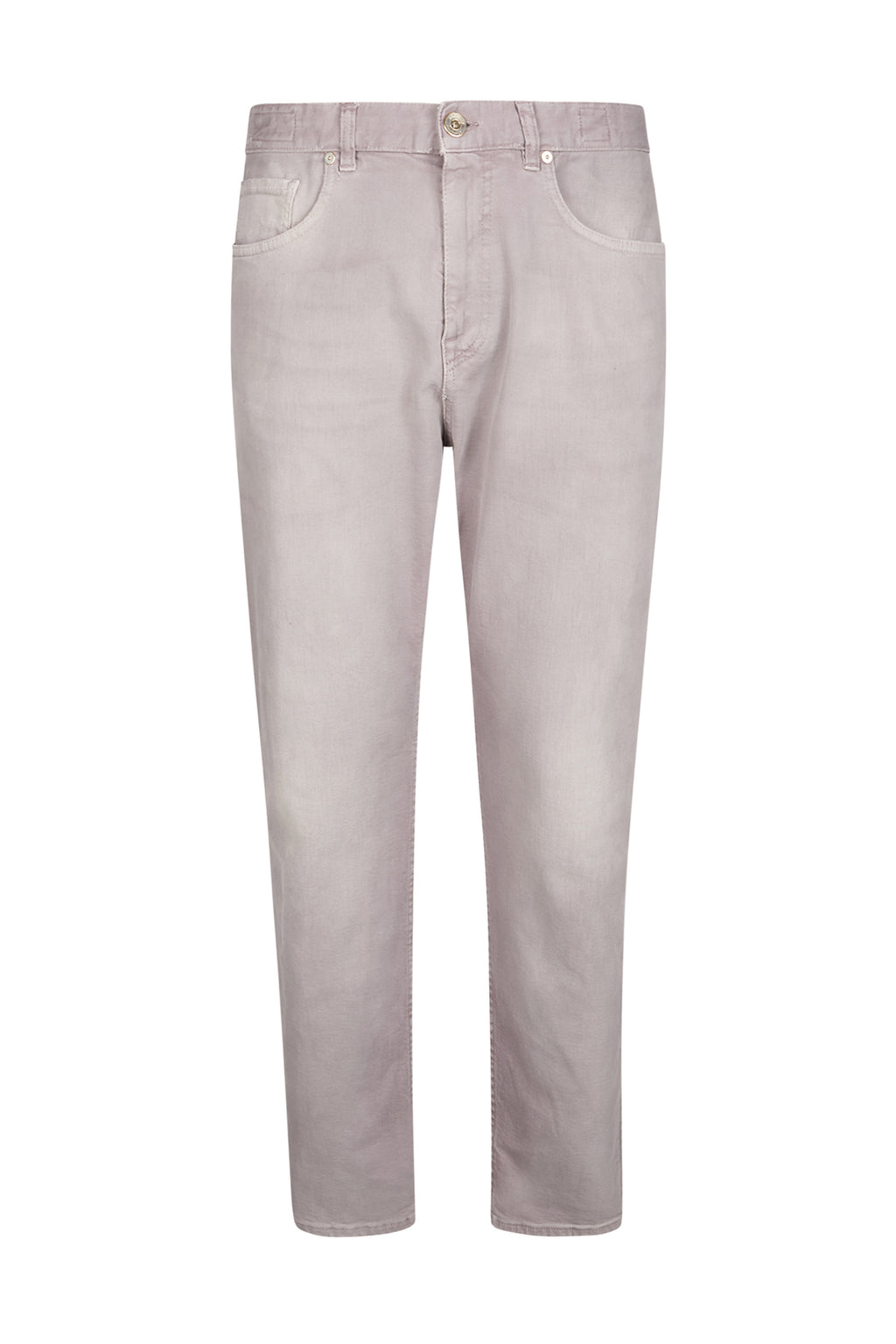 Five-pocket trousers, relaxed fit, crafted from garment-dyed cotton denim. The special dyes employed enable significant water conservation. Additionally, the finishing treatments are done without harmful chemicals, demonstrating Eleventy's commitment to sustainability and exceptional quality. The garment is elevated by the iconic Daisy symbol printed on the inside pockets of every pair of Eleventy jeans.