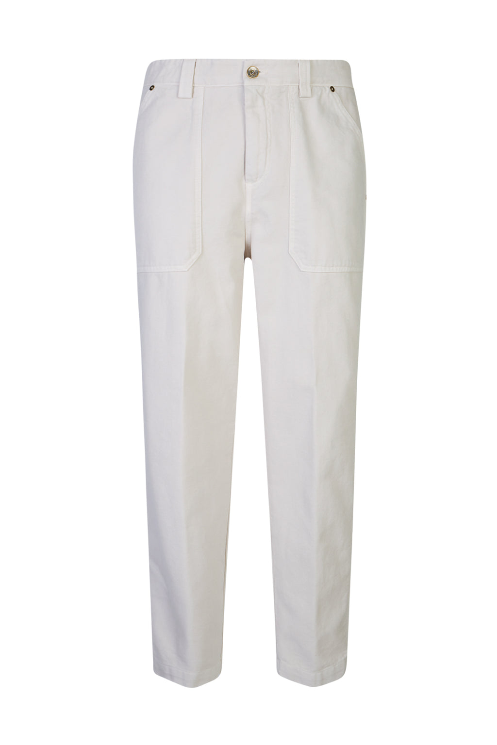 Garment-dyed cotton trousers, tailored in a relaxed fit. The dyeing process accentuates the colour nuances along the seams, giving it a worn appearance. Workwear-inspired design with large pockets and rivet details.