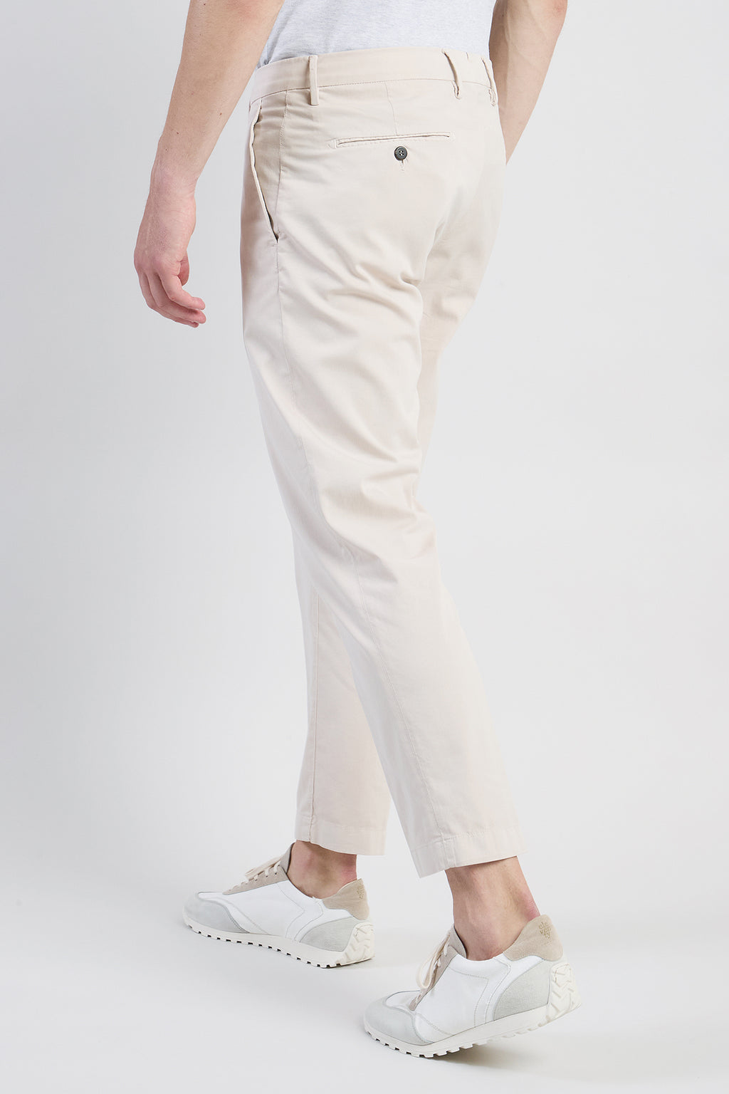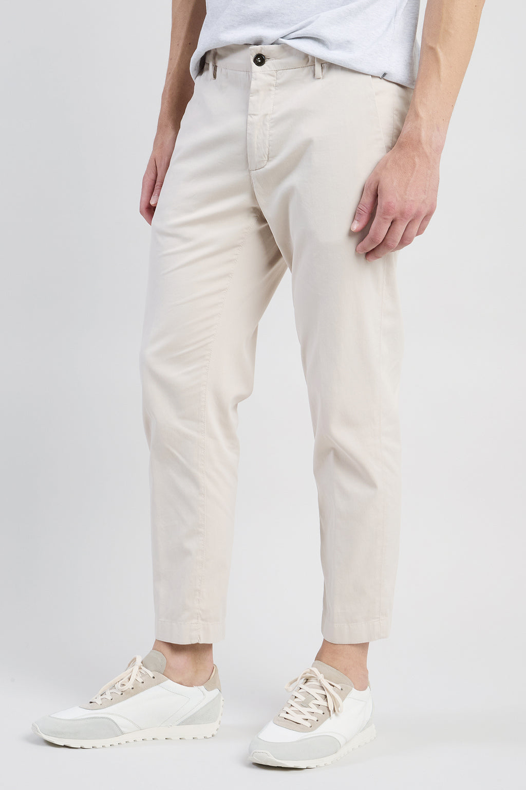 Chino trousers in fine garment-dyed cotton and silk with a regular fit. The garment-dyeing process accentuates the colour nuances along the seams, creating a worn appearance. Enhanced with intricate sartorial stitches.
