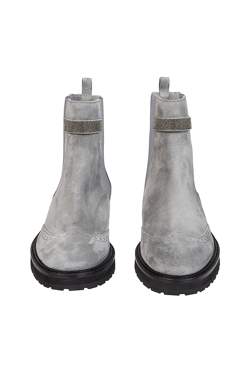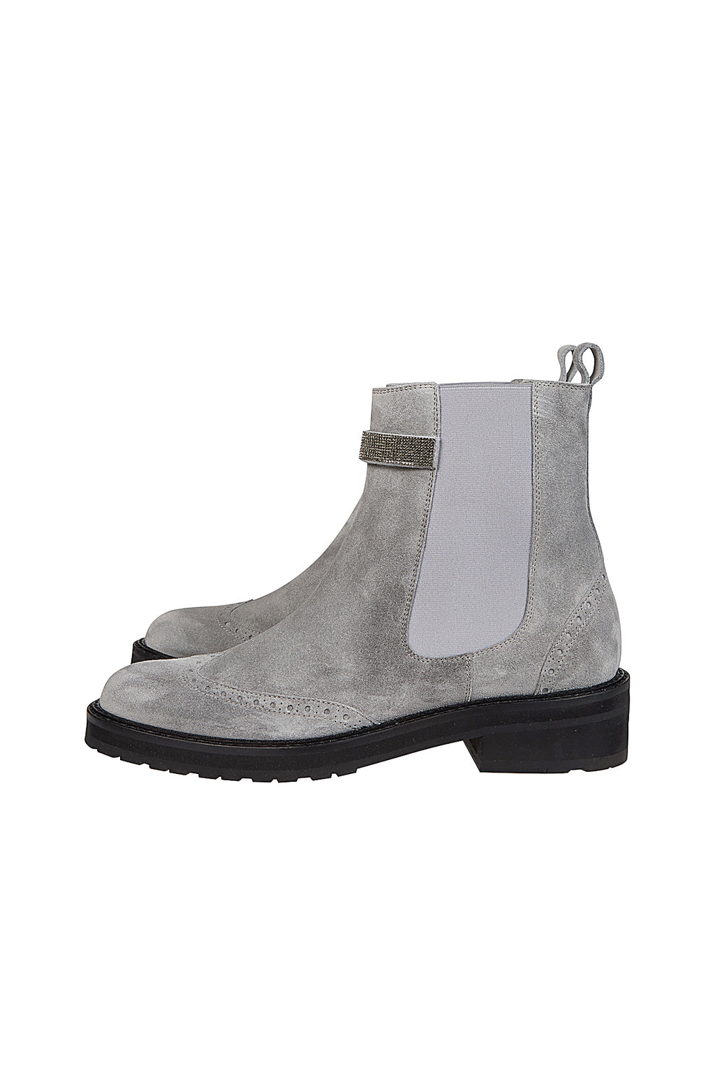 Chelsea boots featuring a stylish yet comfortable rounded toe, crafted from brushed suede and embellished with a small rhinestone detail that adds a feminine touch.