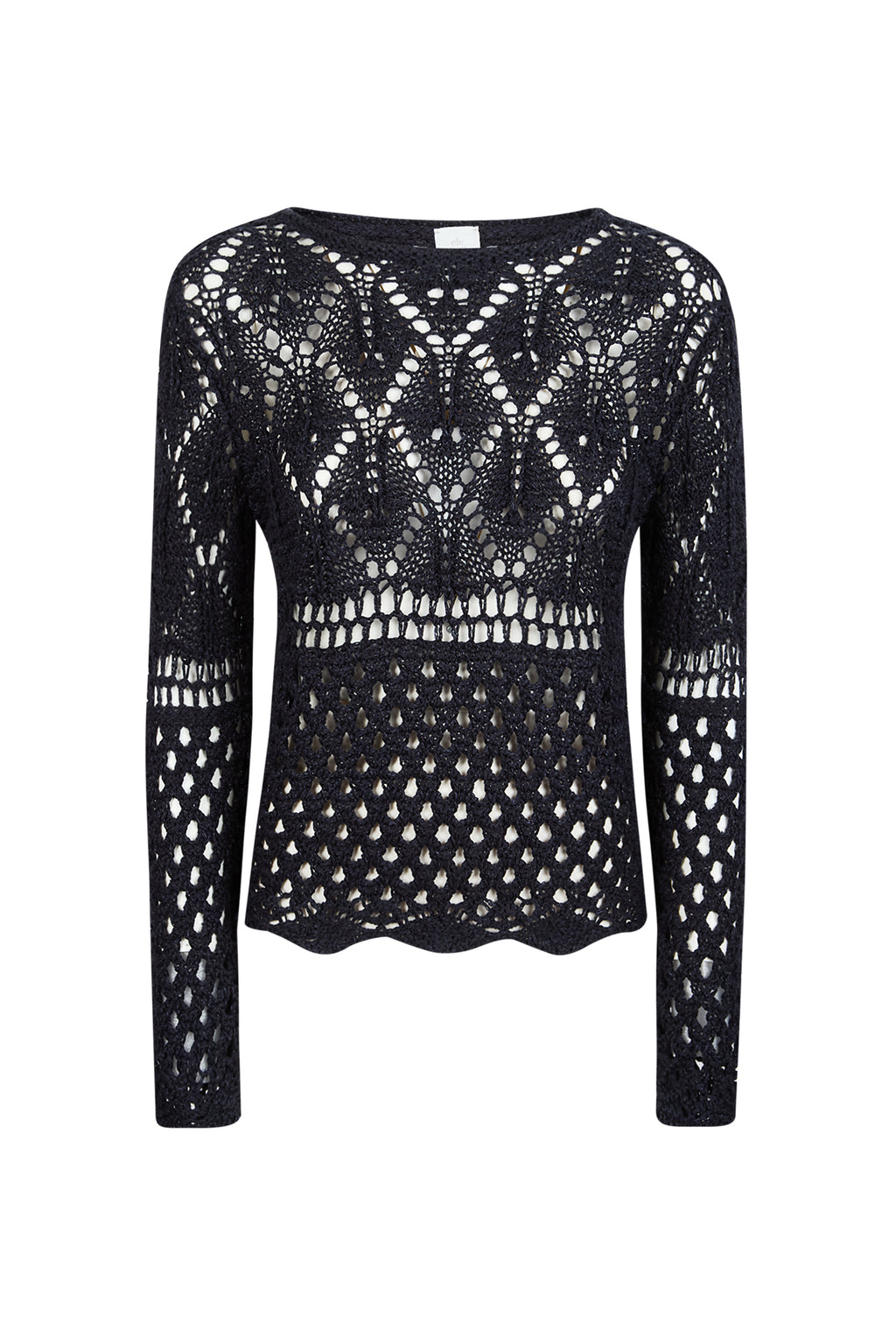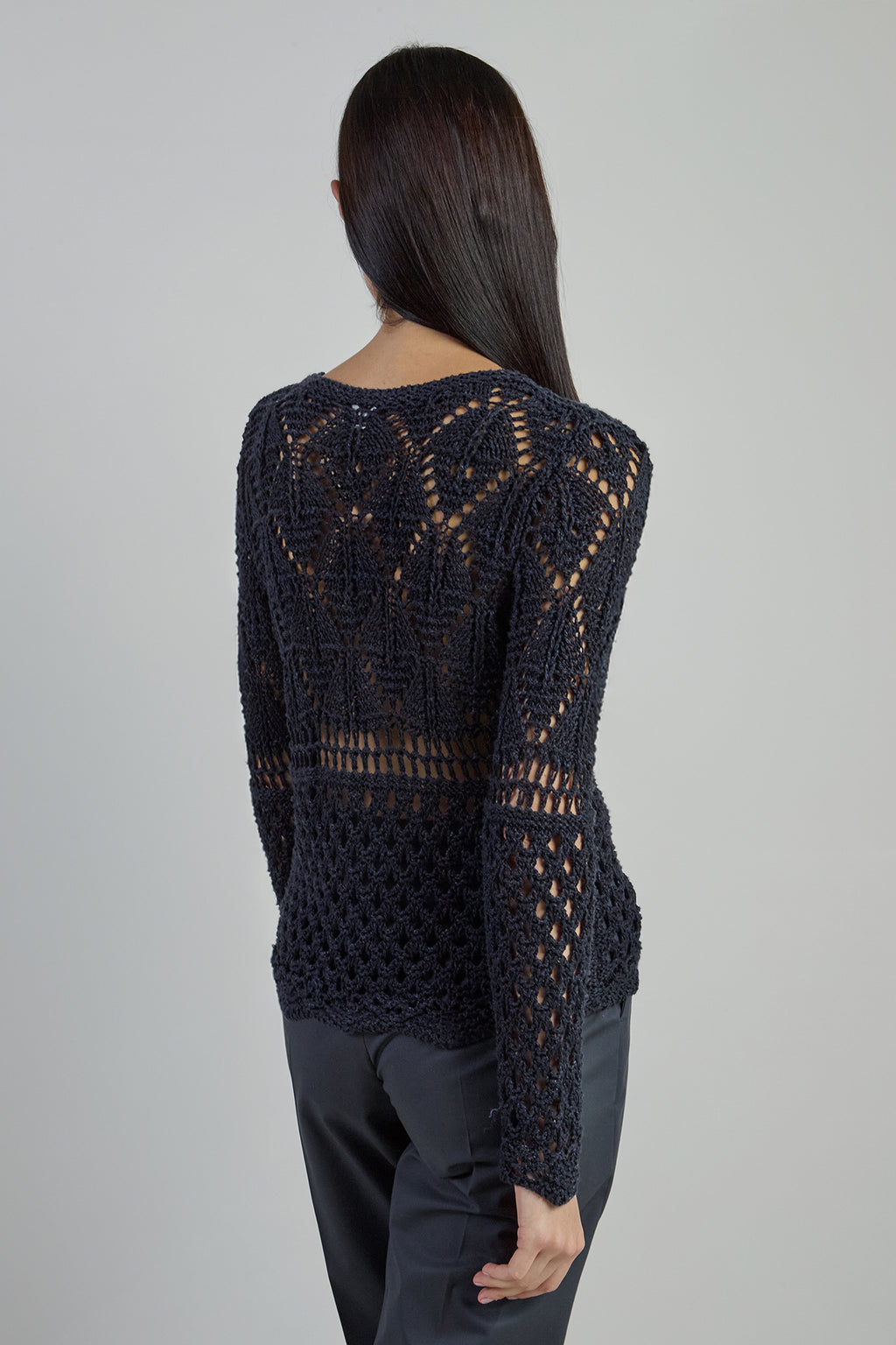 Crew-neck sweater with double stitching, made from a linen-silk yarn with a subtle micro-bouclé effect. The texture gives this piece a refined, exclusive appearance, making it ideal for an elegant, sophisticated look.