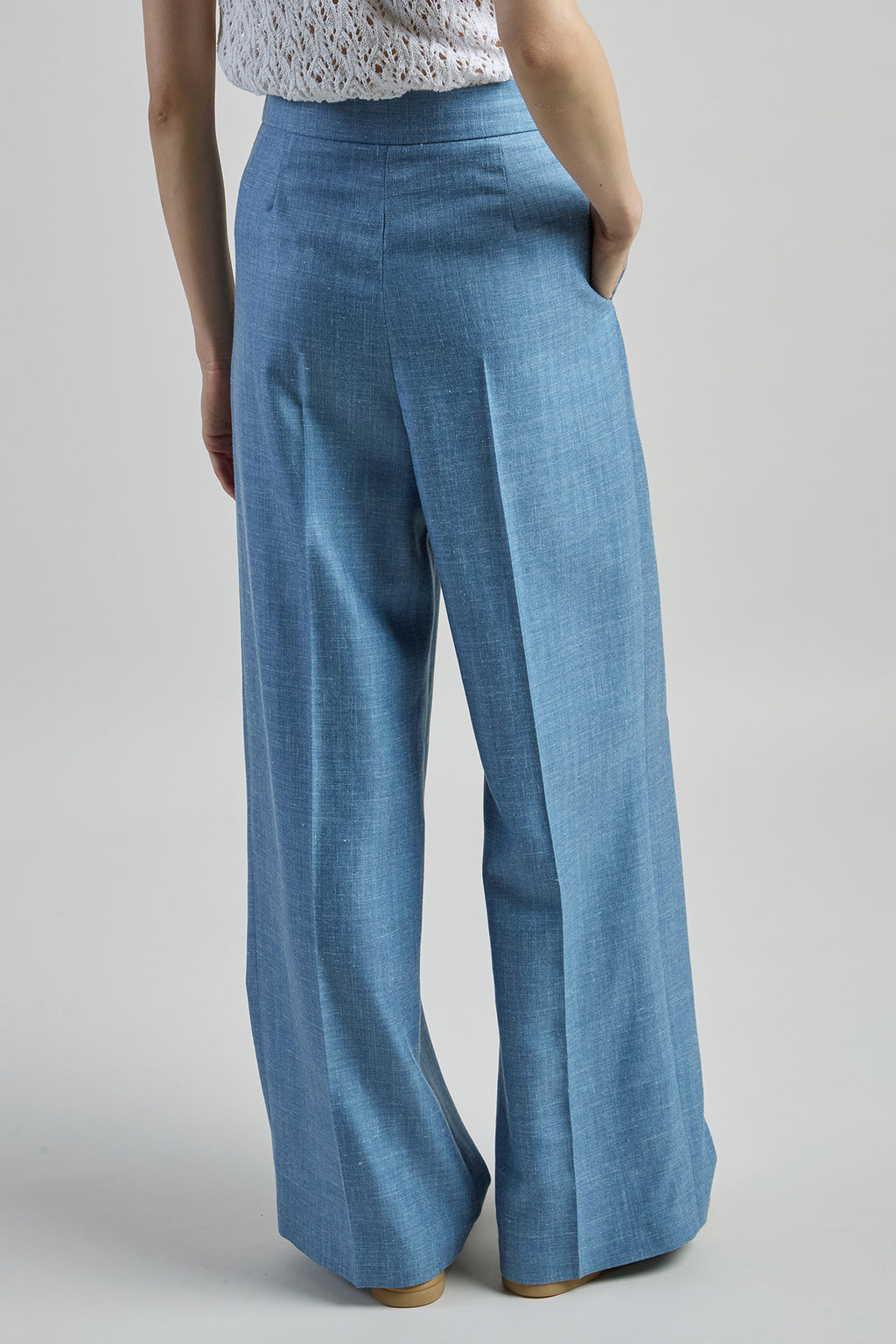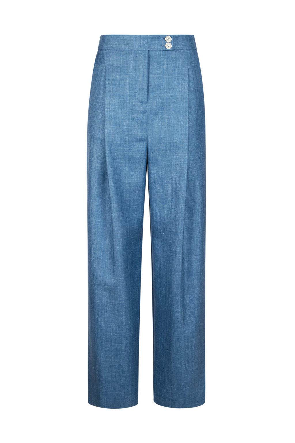 WOOL SILK LINEN MICRO HERRINGBONE TROUSERS