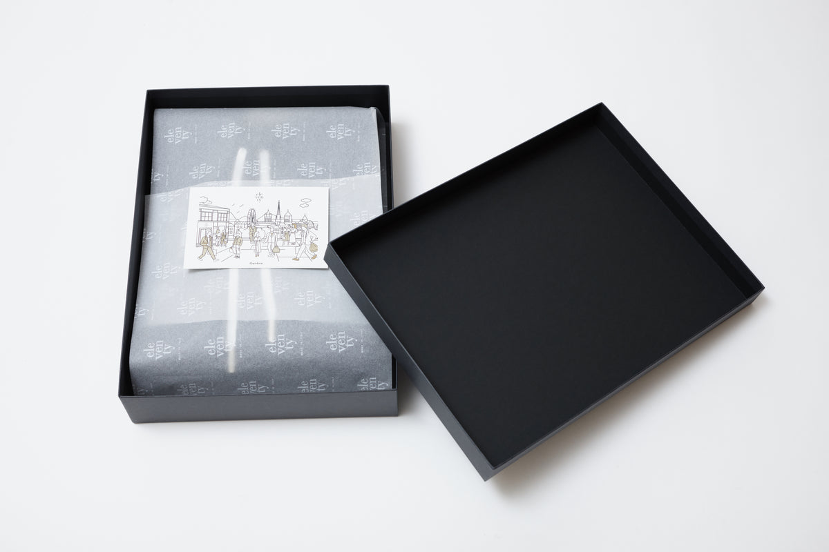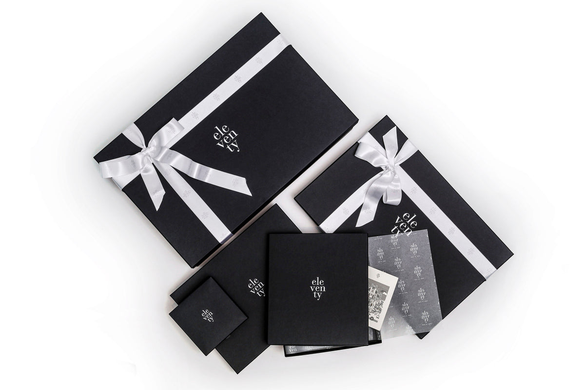 Eleventy Milano utilizza un packaging contemporaneo, elegante e rispettoso dell’ambiente attraverso il ricorso a materiali e fornitori che hanno le piu’ note certificazioni in materia tra FSC.